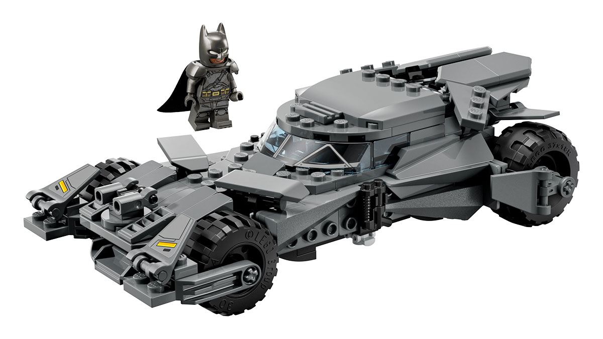 É claro que os veículos lendários do herói não ficaram de fora. A nova coleção apresenta três Batmóveis emblemáticos. O primeiro é baseado no filme “Batman vs. Superman”, com 220 peças e uma cabine que se abre. O segundo recria o visual robusto e sombrio do carro de “The Batman” (2022), com 330 peças. Por fim, temos a versão alada e cheia de exageros do longa “Batman & Robin” (1997), com 272 peças. Cada modelo inclui sua própria minifigura do Batman e uma moeda dourada que se encaixa diretamente na estrutura do veículo, tornando-os itens de colecionador no estilo “Toca do Morcego”.