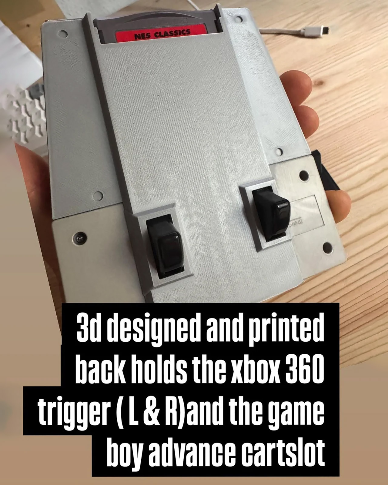 MaSaKee ainda adicionou gatilhos analógicos retirados de um controle de Xbox 360, ideais para jogos de corrida ou títulos que exigem sensibilidade nos comandos. A bateria, por sua vez, fica acomodada na parte inferior e pode ser substituída facilmente por meio de uma tampa deslizante.