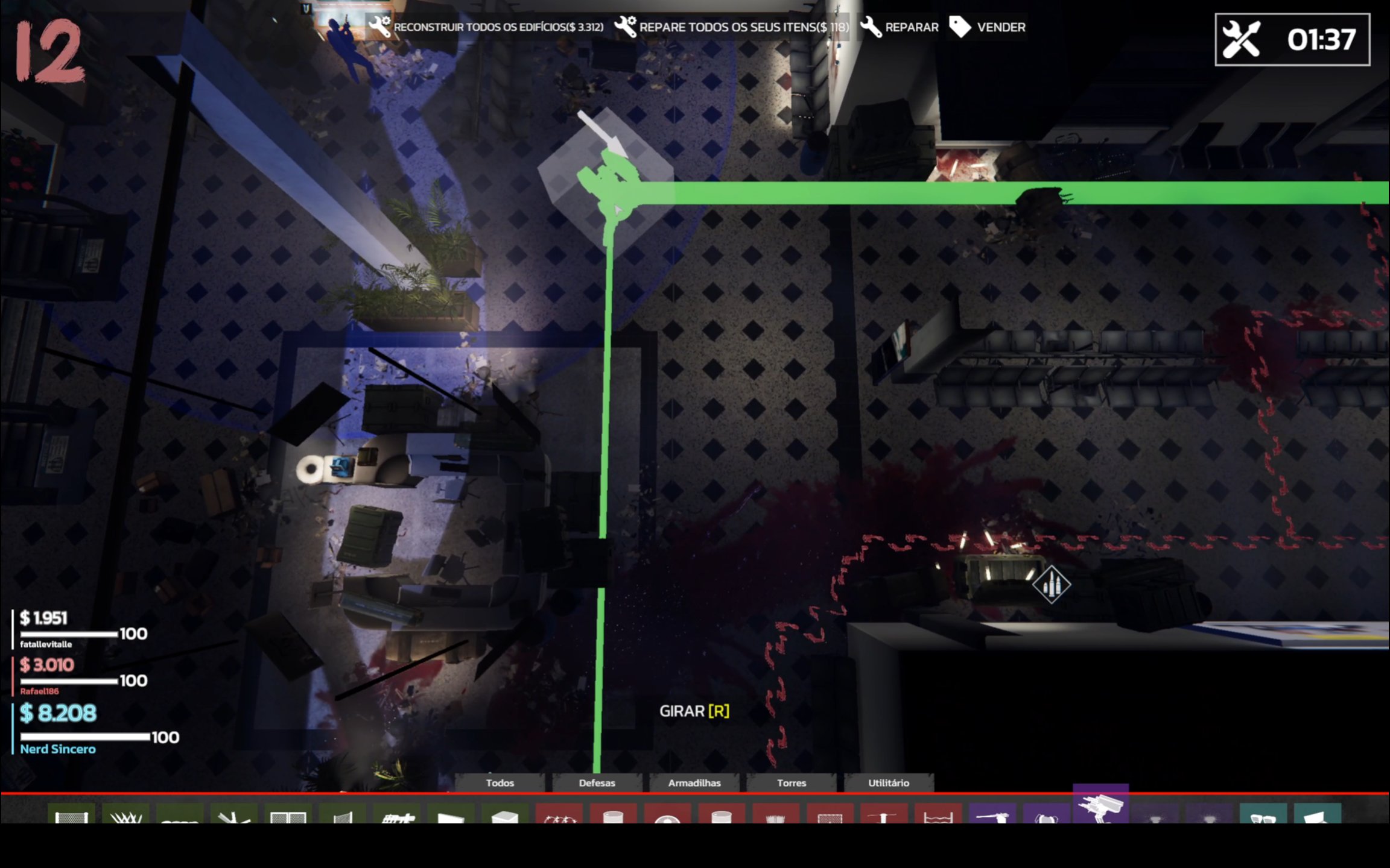 Mas como o título indica, o foco aqui é construir nossas defesas com um sistema de building bem vasto. Minas terrestres, arames farpados, diversos tipos de barricadas e até mesmo torretas automáticas estão à disposição para utilizarmos.