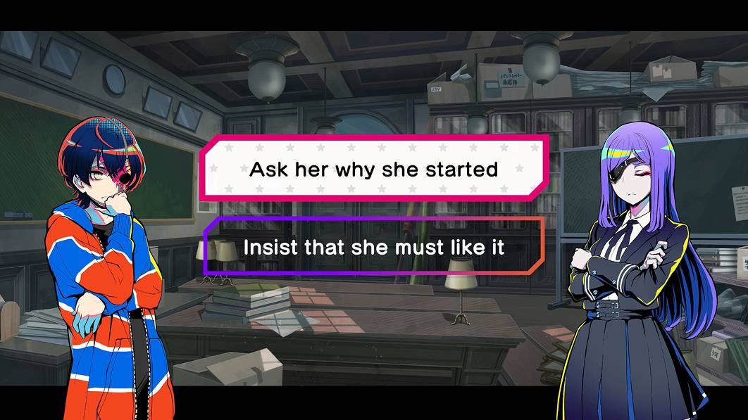 E não se distanciando muito das visual novels, horas de diálogos na campanha principal e principalmente em missões secundárias estão presentes com os carismáticos e excêntricos habitantes da cidade.