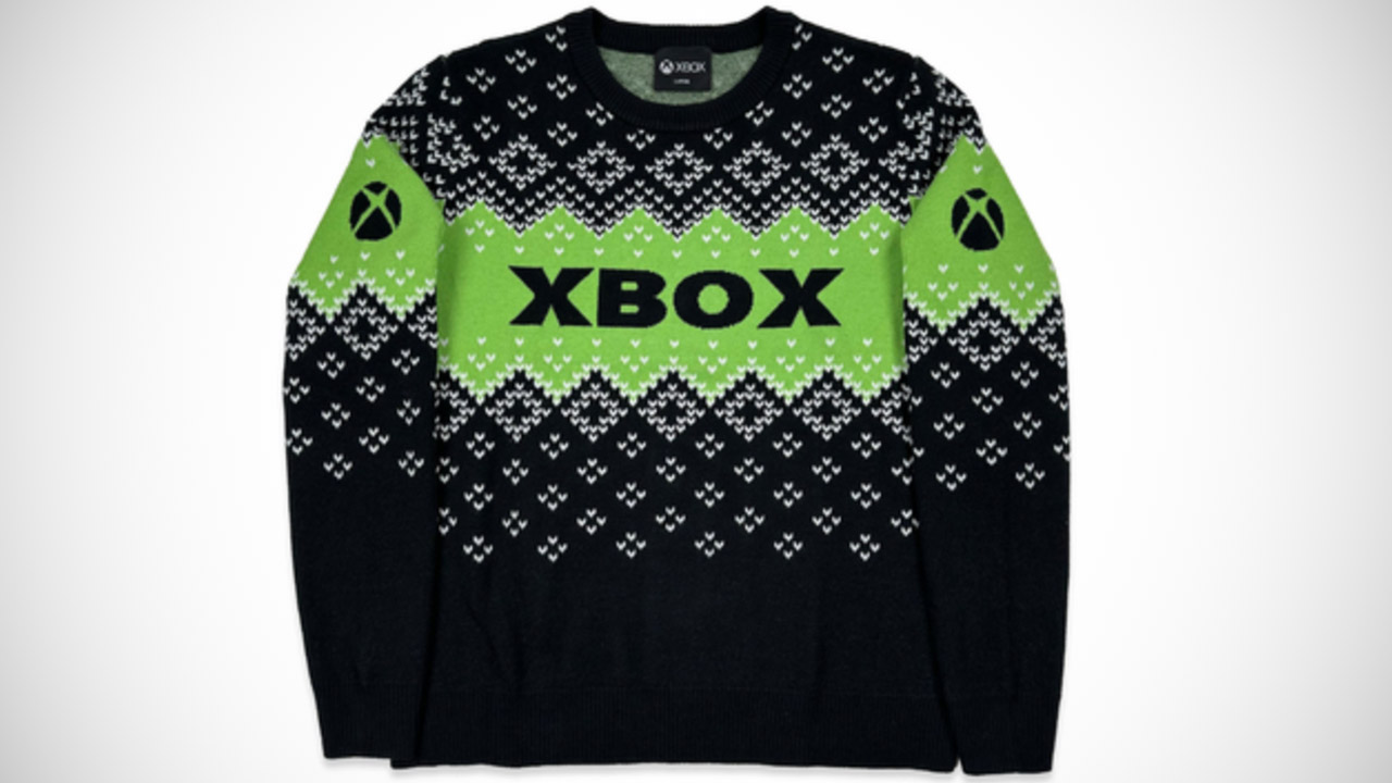 Fechando o trio, o suéter verde é o presente perfeito para fãs do Xbox. Ele traz uma silhueta estilizada do controle, elementos que remetem aos anéis do Halo e até sombras discretas do Master Chief.