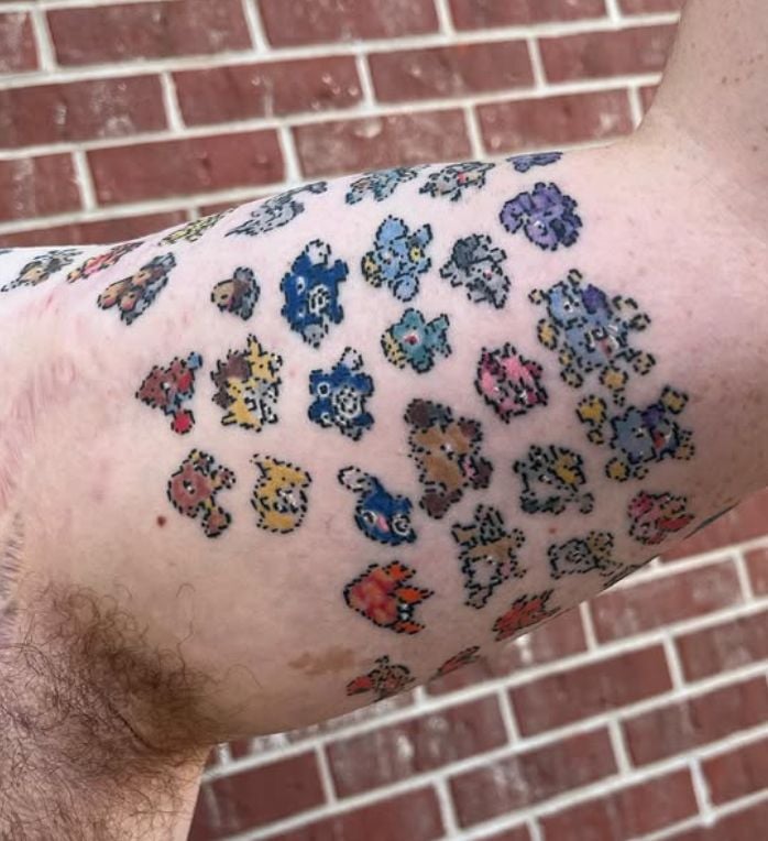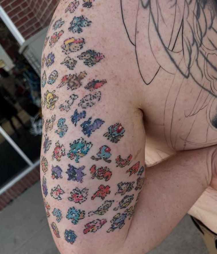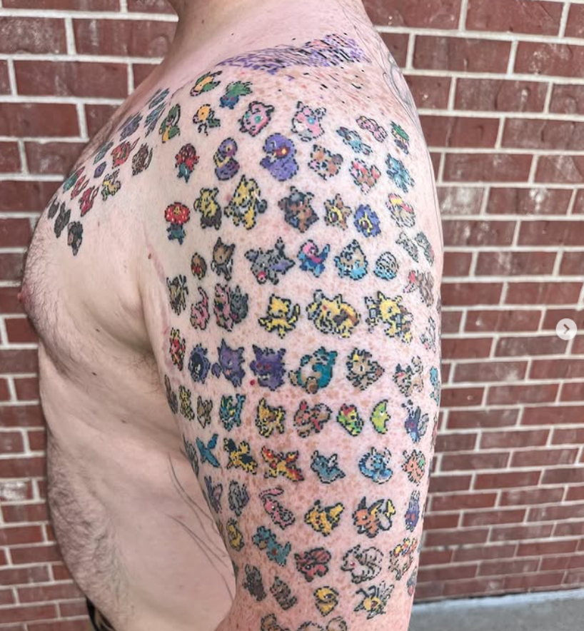 Ele tatuou os 151 Pokémon originais no braço e parte do peito. O trabalho foi realizado junto ao artista conhecido como Fergie Ferg, que utilizou as versões em pixels da terceira geração dos jogos para reproduzir cada criatura com precisão.