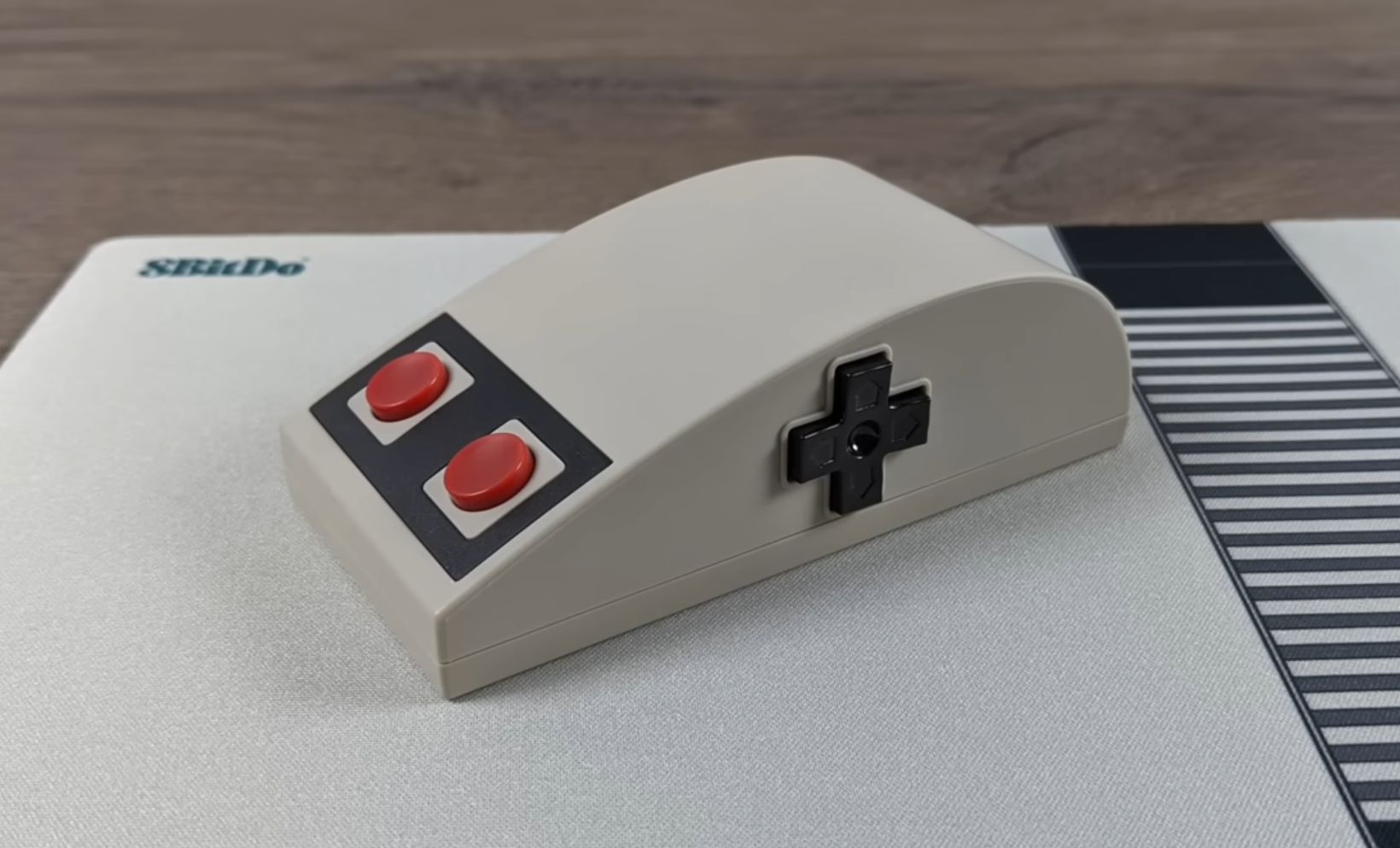Os botões principais seguem exatamente o layout do controle original. Os cliques ficam onde estariam os botões A e B, com uma sensação emborrachada que lembra bastante o NES. Eles funcionam bem, mas são maiores e mais afastados do que em um mouse tradicional, o que exige um pouco de adaptação. Entre eles há um painel sensível ao toque em 3D que substitui a rodinha de rolagem. Basta deslizar o dedo para cima ou para baixo. Já o direcional à esquerda serve como atalho de navegação, permitindo avançar ou voltar páginas no navegador e até alternar telas.