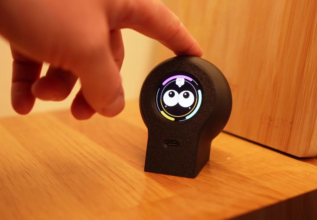 Por dentro, o projeto é composto por um microcontrolador, uma tela colorida redonda, sensores de toque e luz, bateria e alguns fios. Lagier descreve o Desk Companion como um protótipo funcional, não como um produto final. O visual é discreto, deixando que a personalidade fique por conta das animações, enquanto o hardware cumpre seu papel sem chamar atenção.