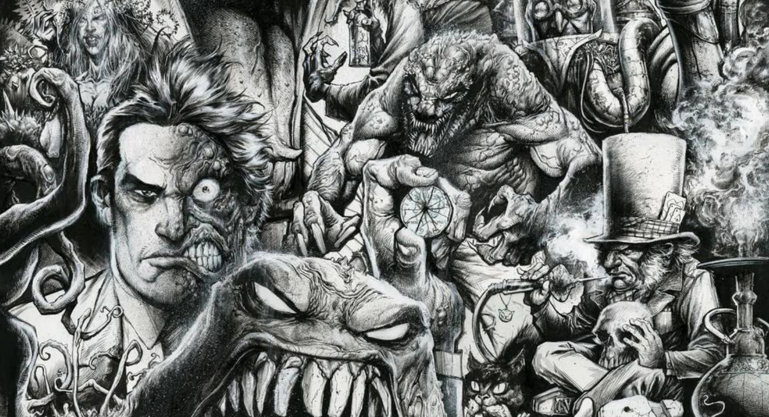 Ao mesmo tempo, o que mais chama atenção é como ele puxa tudo para o território dele. Mesmo um personagem famoso ganha cara de pesadelo, com musculatura distorcida, sombra pesada e aquela textura de tinta que parece grudar no papel.