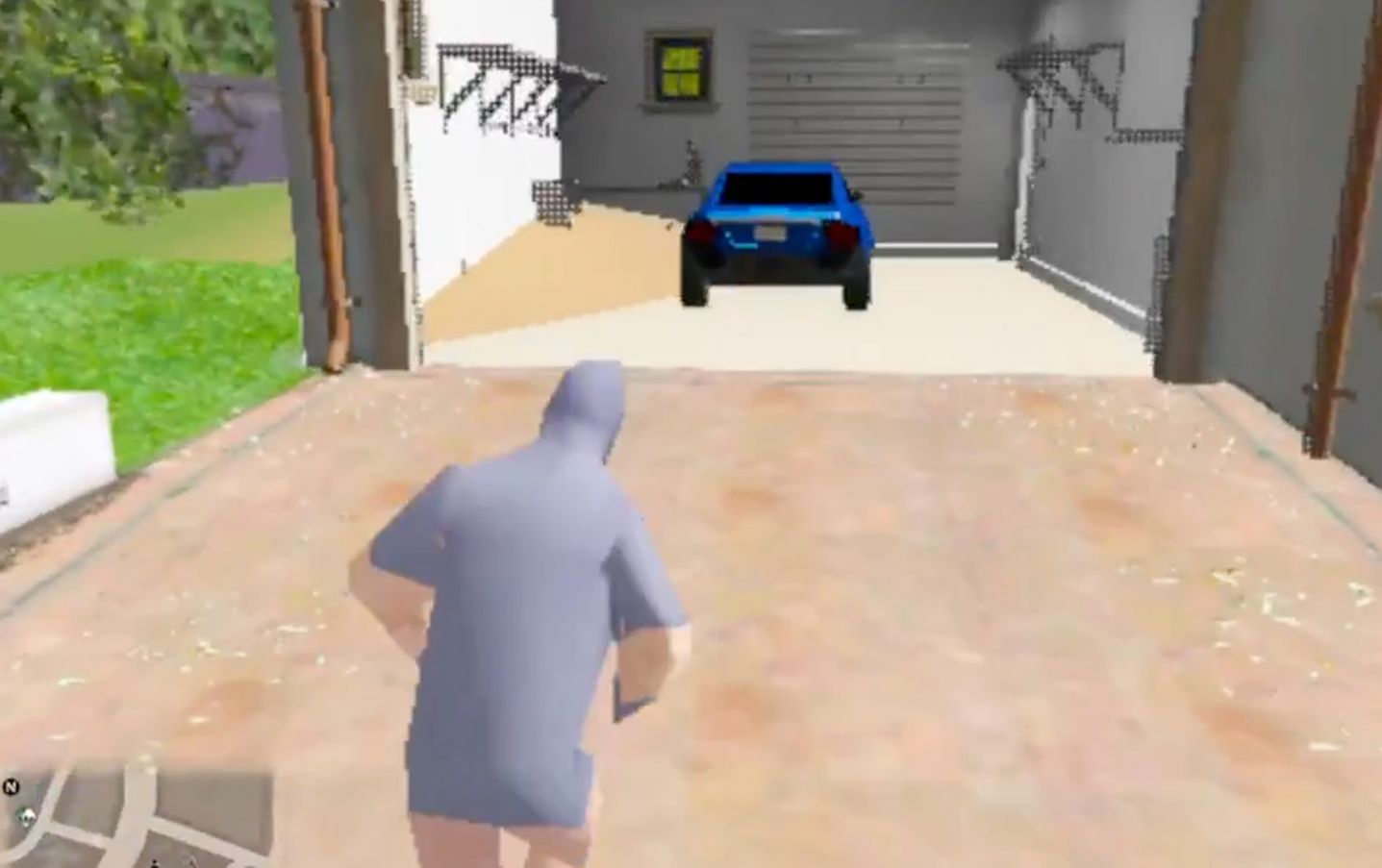 O mapa sofreu ainda mais. Regiões inteiras desapareceram. Em vários pontos, o chão virou uma superfície cinza e plana que pisca enquanto o jogador se movimenta. Texturas detalhadas deram lugar a polígonos simples. Árvores são apenas manchas verdes. Casas atravessam umas às outras sem qualquer lógica.