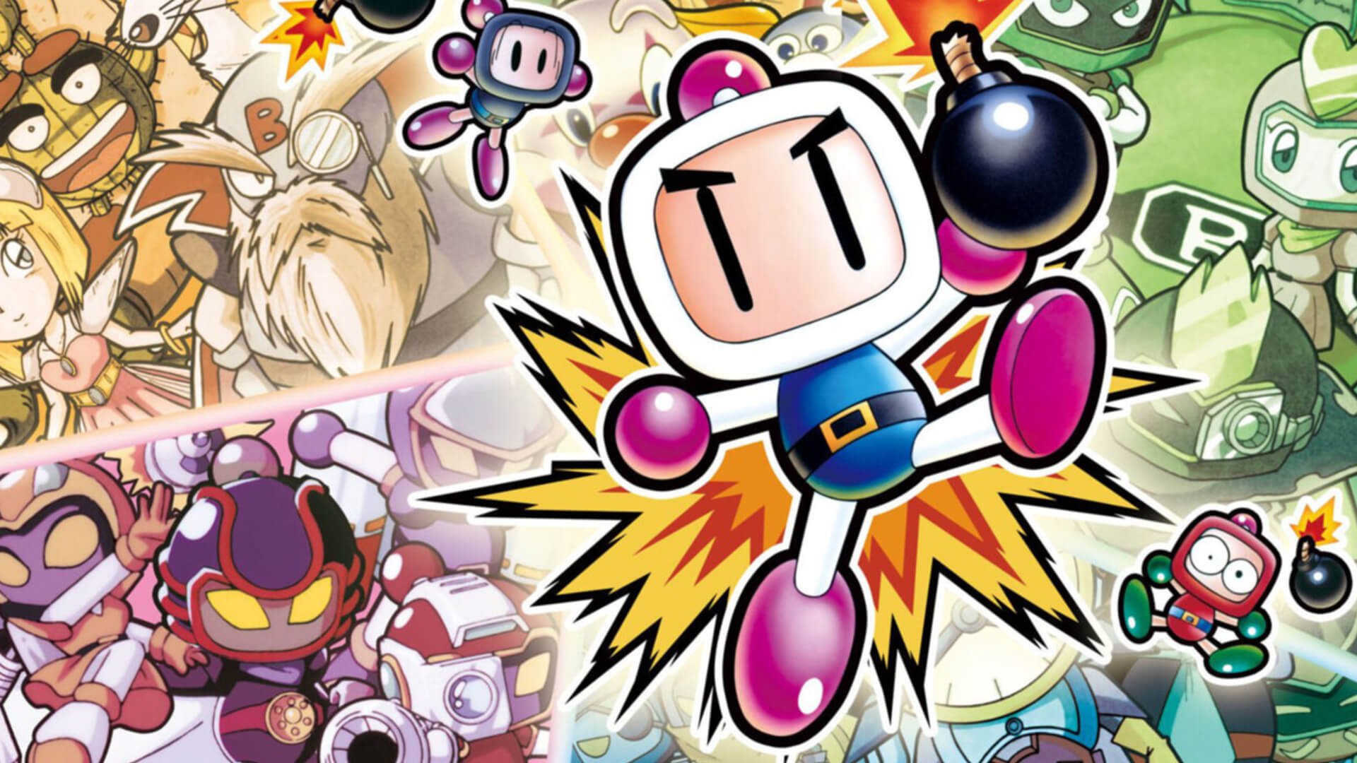 A série nasceu no final dos anos 1980 com Bomberman, para Famicom (NES), num jogo de fases com vista top-down em que um pequeno robô usa bombas como arma de defesa e ataque, com a missão de desbravar labirintos sempre sob ameaça de ser cercado e explodido. O sucesso foi tão grande que, em 1993, a Hudson Soft lançou Super Bomberman, elevando o conceito a um nível de produção muito mais refinado, com gráficos coloridos, inimigos mais carismáticos e, principalmente, a consolidação do modo multiplayer local, que virou referência de festa de console.