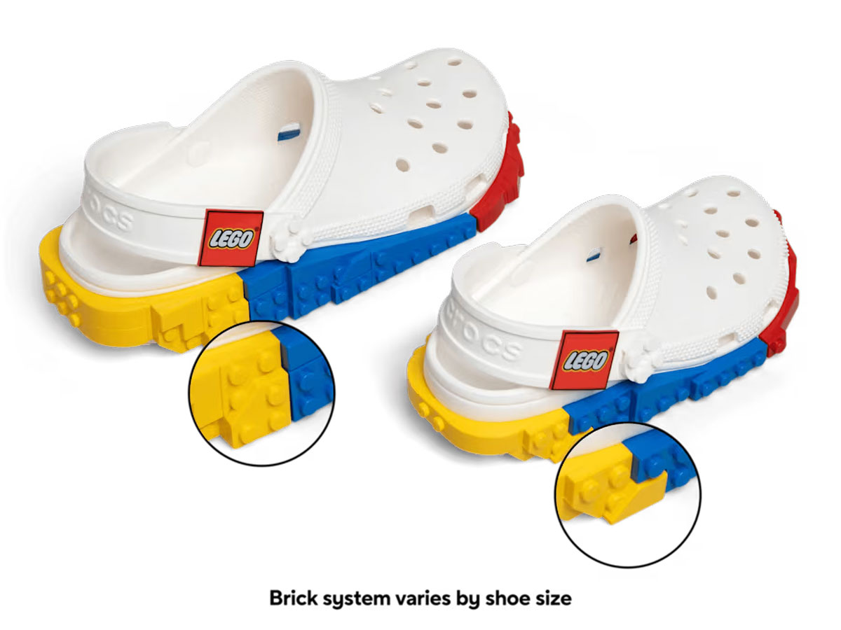 Já o Masterbrand Creativity Clog e o Creativity Clog vão para o lado mais colorido, com uma “faixa” de blocos multicoloridos na sola e opções que incluem variações para adultos e crianças. A coleção também traz pacotes de Jibbitz temáticos para quem gosta de trocar o visual do sapato com frequência.
