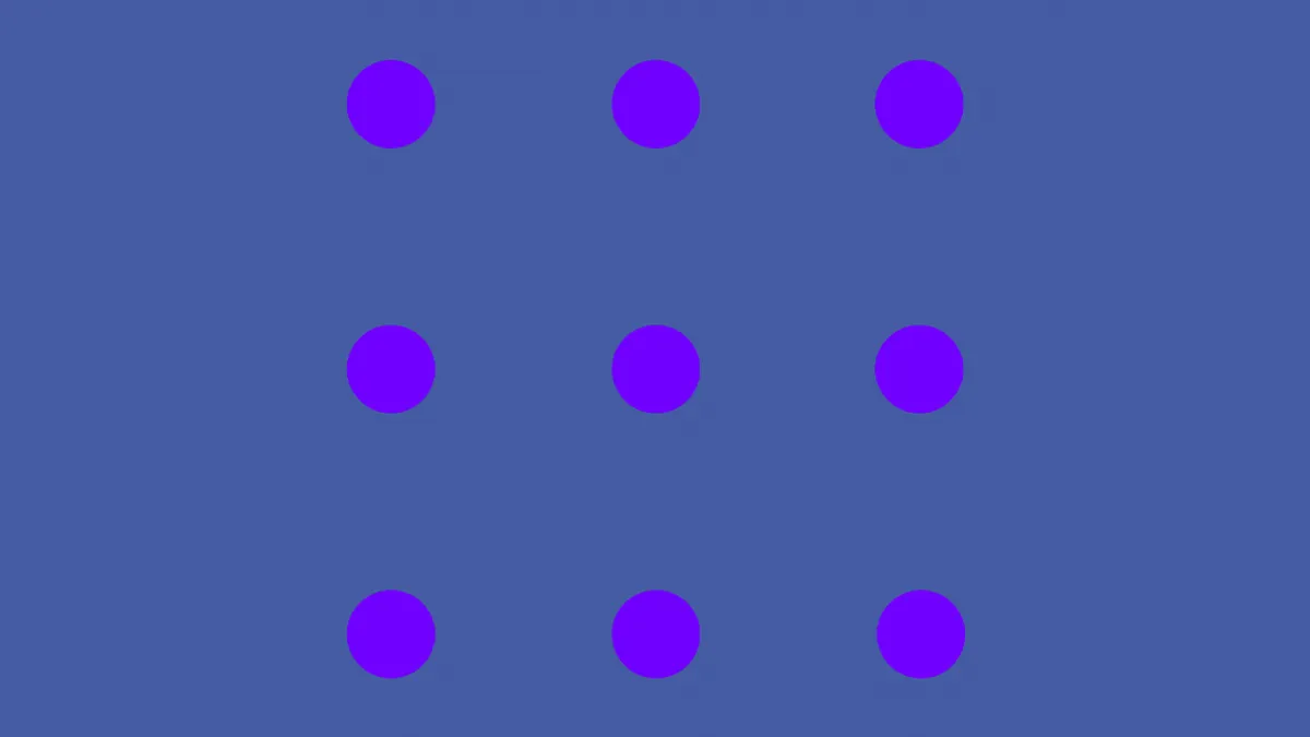 Uma nova ilusão de ótica está chamando atenção ao brincar com algo que parece simples à primeira vista, mas revela um mecanismo bem mais complexo da visão humana. A imagem mostra nove pontos dispostos em um quadrado, todos na mesma tonalidade, mas muita gente jura que não está vendo isso. Dependendo de onde o olhar se fixa, apenas um ponto parece realmente roxo, enquanto os outros ao redor passam a ser percebidos como azulados. O resultado é um efeito curioso, quase hipnótico, que transforma uma figura estática em uma experiência visual surpreendente.