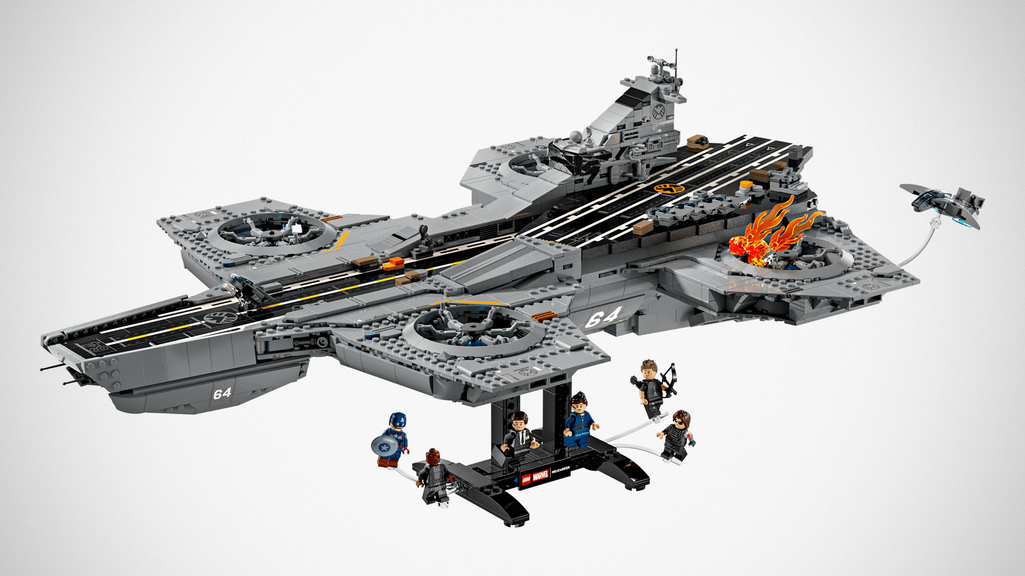 O Helicarrier da SHIELD é um símbolo importante da franquia, aparecendo com destaque em filmes como Os Vingadores e Vingadores: Era de Ultron. Isso aumenta o apelo nostálgico do set, que funciona quase como uma homenagem aos primeiros grandes momentos do MCU no cinema.