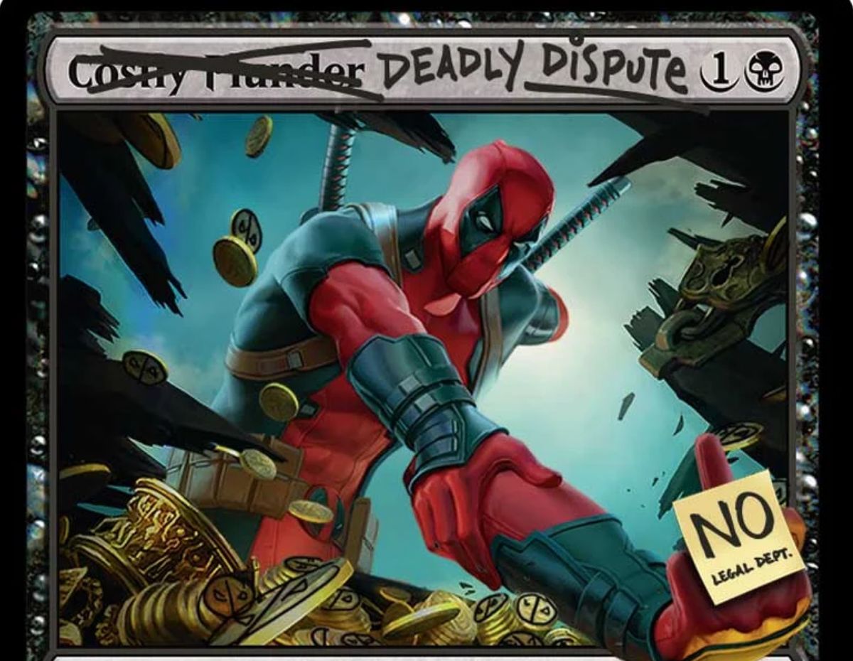 O set inclui cinco cartas conhecidas de Magic reinterpretadas por Deadpool, como Lightning Bolt, Sol Ring, Deadly Dispute, Thrill of Possibility e Lightning Greaves. A ideia é que o mercenário tenha “consertado” cada uma delas, rabiscando e alterando a arte com comentários e intervenções visuais que fazem as cartas parecerem propositalmente vandalizadas.