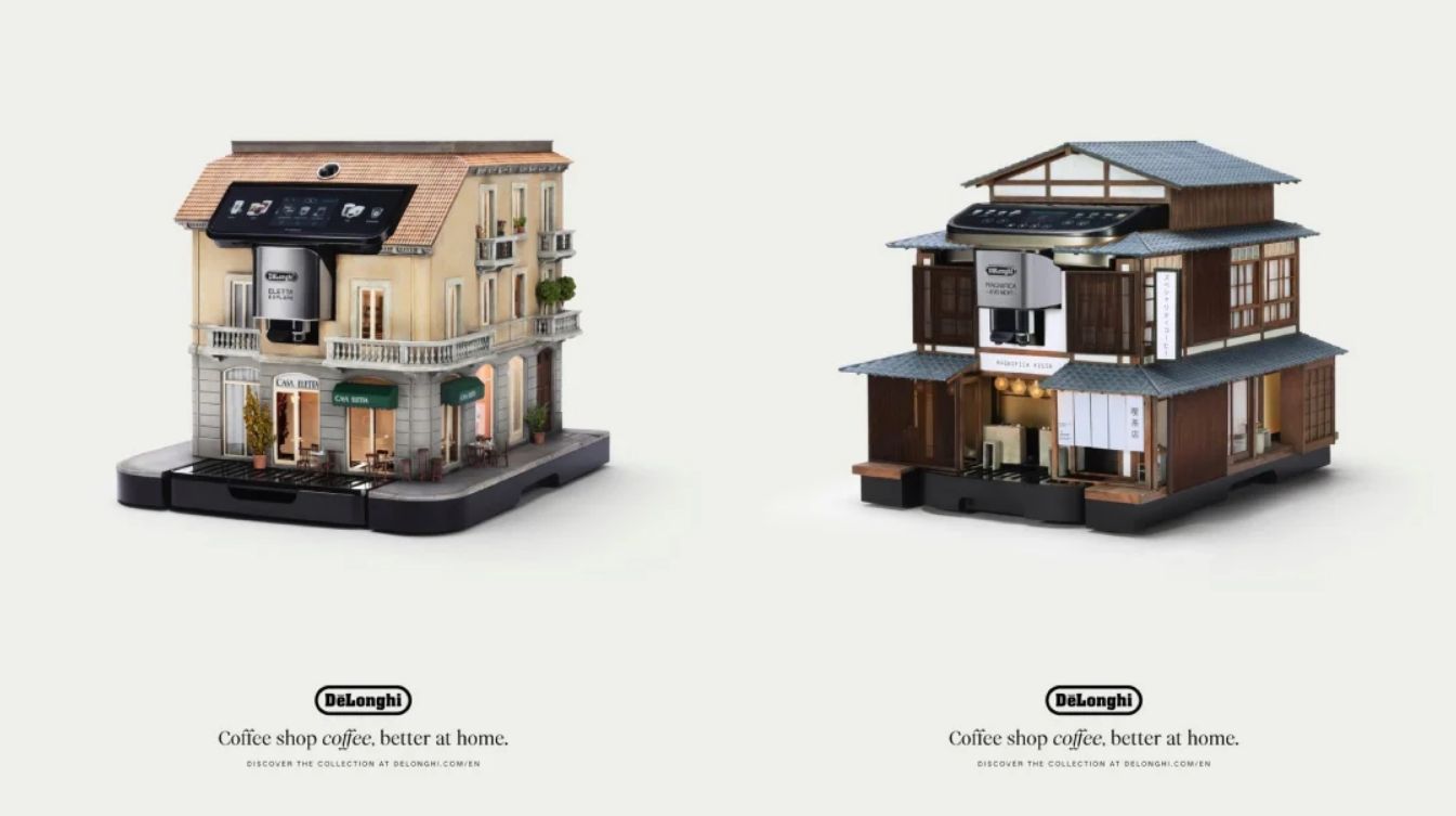 As cafeteiras da De’Longhi ganharam um toque de cinema e artesanato minucioso. A marca italiana se uniu a Simon Weisse, criador das miniaturas vistas em filmes de Wes Anderson como O Grande Hotel Budapeste e Asteroid City, para transformar máquinas de café em pequenos cafés cheios de personalidade.
