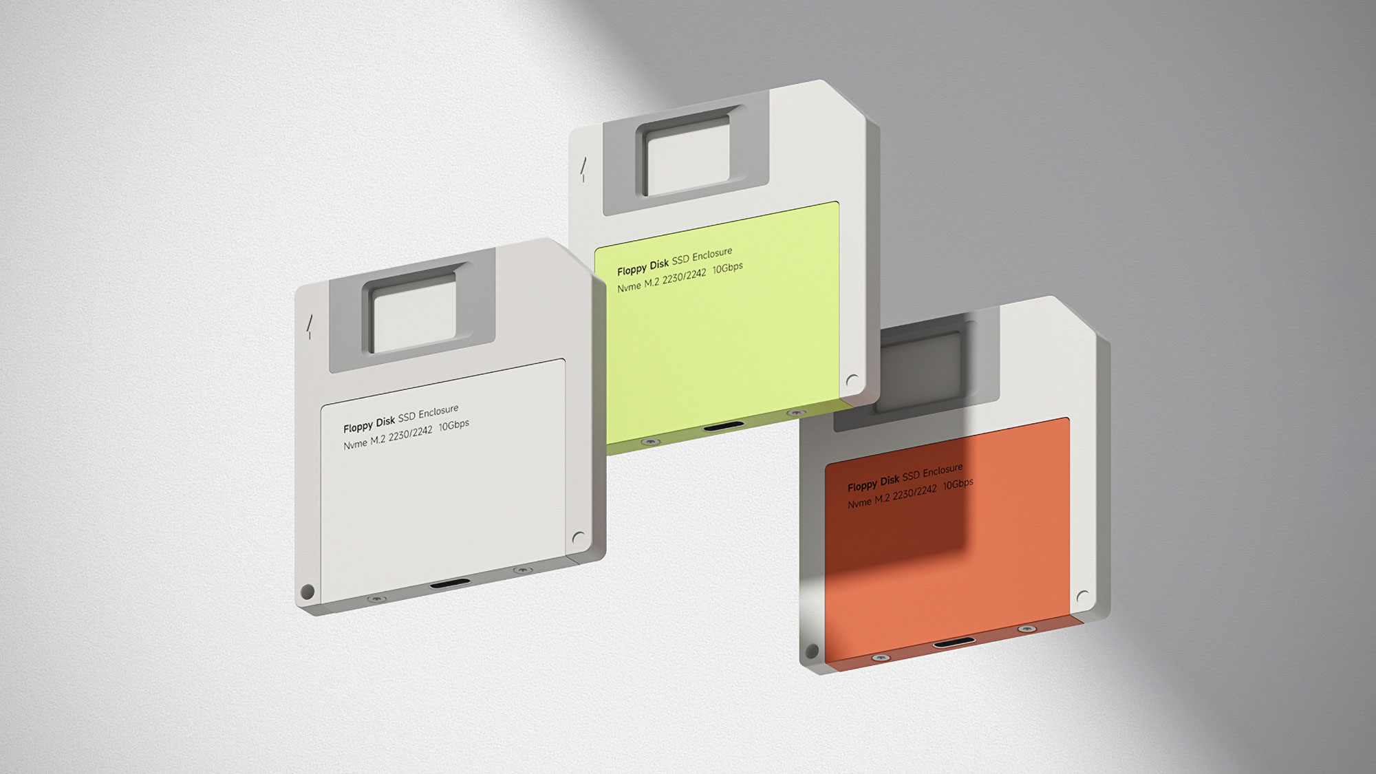 Apesar da aparência retrô, o interior não tem nada de ultrapassado. O enclosure suporta SSDs NVMe M.2 nos tamanhos 2230 e 2242 e utiliza conexão USB‑C com padrão USB 3.2 Gen 2. Segundo a fabricante, a taxa de transferência pode chegar a 10 Gbps, com velocidades reais de leitura e gravação em torno de 1000 a 1200 MB/s, milhares de vezes mais rápido que um disquete original.