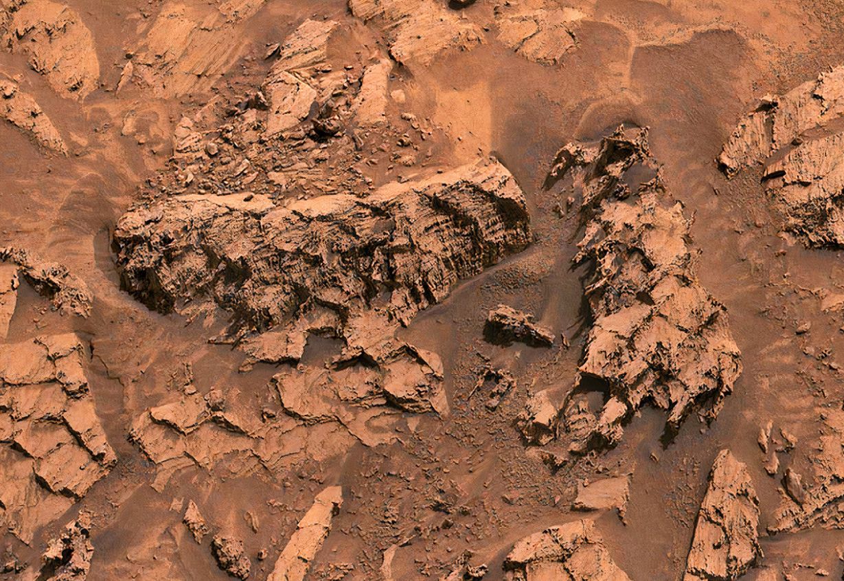 O robô Curiosity, da NASA, voltou a chamar atenção ao registrar formações rochosas incomuns na superfície de Marte. As imagens mostram pedras cobertas por padrões geométricos que lembram escamas de dragão ou de grandes répteis, espalhadas por uma área extensa do planeta.