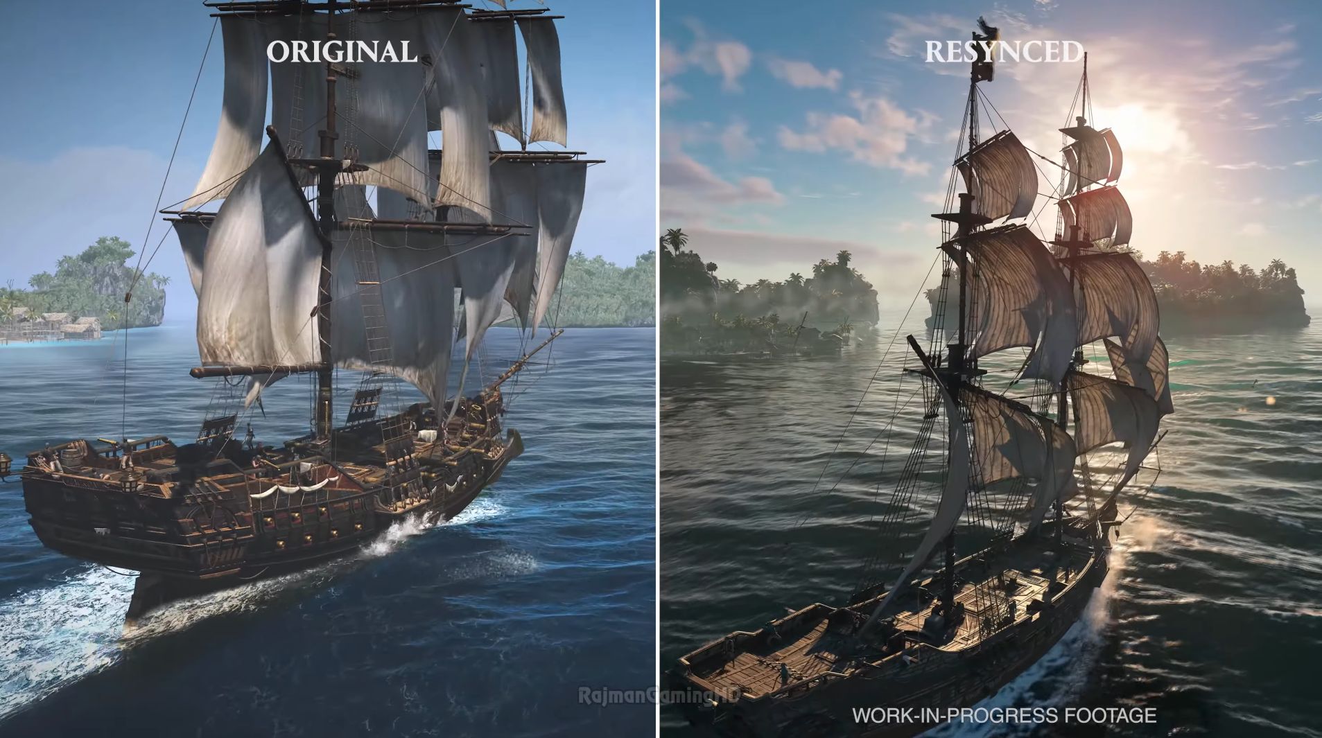 No lado técnico, a Ubisoft está vendendo o Resynced como um salto de geração de verdade. Há menção a ray tracing, Dolby Atmos, ambientes mais integrados e um sistema de clima dinâmico, com tempestades e variações no mar e no céu do Caribe. Outro detalhe bem-vindo: as telas de carregamento foram removidas, ajudando a deixar a navegação mais fluida.